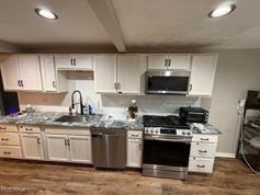 Updated single-family rental available in Oakwood Village within the Bedford School District. This 4-bedroom home offers a flexible layout with a full bathroom conveniently located on the main level. Interior features include an updated kitchen with modern cabinetry, stainless steel appliances, and durable flooring throughout the main living areas. HUGE primary bedroom on the 1st floor with walk-in closet. Two andem bedrooms upstairs. Recent improvements include a newer furnace, central air conditioning, ceiling fans, and upgraded electrical, providing added comfort and efficiency. The home also includes an attached 2-car garage, a full basement with laundry and ample storage, and additional usable space. Enjoy a spacious yard with room for outdoor use, along with an enclosed porch/mudroom area. Convenient location with easy freeway access and close proximity to shopping, major employers, Amazon. Centrally located just minutes from both Cleveland and Akron, offering convenient access to surrounding areas. Immediate occupancy available, professionally managed.