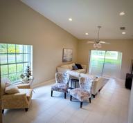 First time available! Completely renovated and tastefully appointed - host and entertain with this versatile Floorplan boasting 14' vaulted ceilings for a spacious feeling. Offering both privacy and flexibility with Den/Office functioning as optional third bedroom (with queen sectional sleeper). Primary en-suite within its own wing. Fine Italian linens, sleep number beds, and ADA considerations including large step in primary shower, grab bars, wide doorways, massive primary closet and one level living. Conveniently located large capacity washer and drier adjacent to kitchen. Private built in gas grill within the screened lanai offering additional entertainment spaces and direct access to expansive private yard area and additional patio. Rent includes cable/internet/water. Baywinds is one of the area's premier adult communities, known for its beautifully designed homes and vibrant lifestyle. It is centrally located, close to restaurants, shopping, downtown West Palm Beach, the turnpike, I-95, and the airport. elevate the community Amenities including 4 bocce courts, 4 tennis courts, 4 pickleball courts, 4 shuffleboard courts, 2 swimming pools, a resistance-walking pool, hot tub, full service fitness center, aerobics room, billiards room, men's and women's locker rooms with saunas, library, media room.