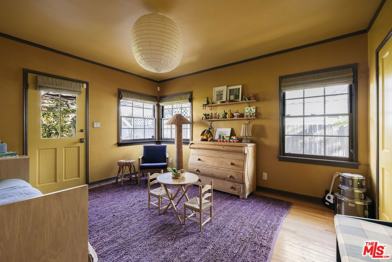 (818) 482-2253 - Picturesque traditional modern home with interior design by Garance Rousseau awash in mature trees and greenery with fully done detached recording studio or guest house available now. Stepping past the mature tree and grassy front yard into the home puts you in the living room, featuring original hardwood floors, wood framed windows, and bespoke fixtures. Through the cased transition is the formal dining room with wainscoting that gives way to the kitchen area, all accented with Farrow & Ball paint and detailing. The custom kitchen is framed by picture windows, a built-in breakfast nook, and features stainless steel high end appliances. The bathroom has been renovated with Rosso Alicante marble floor and Fireclay tile walls, Rejuvenation vanity and antique glass knobs, and clawfoot bathtub and shower. The guest bedroom has beautiful wood windows and a door to the backyard, while the primary bedroom has a custom closet with built-ins and room for a king bed. The gated backyard has a covered patio for al fresco dining and a koi pond surrounded by mature plants, vines and fruit trees. Across the small bridge over the koi pond through a door is a fully outfitted approximately 300 sf recording studio or guest house with its own powder room bathroom. It has been soundproofed, fitted with hardwood floors and recessed lighting, features a window looking out to the koi pond and greenery, and has its own dedicated mini split HVAC system. The home has central heating and cooling, EV car charger, custom built-out laundry closet, and parking in the driveway for two cars outside the gate. A special oasis in North Hollywood. Listing provided by: Lester, Derek of Compass LA State License 01991628 Listing posted by Fernando Valen (818) 482-2253. [SYNDID 4150079 02092026]