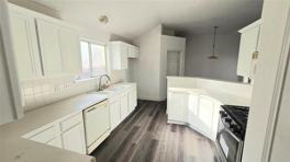 The kitchen is equipped with a gas cooktop, dishwasher, disposal, and microwave, along with ample cabinet space for storage. Additional highlights include central heat & air, ceiling fans, an attic fan for energy efficiency, and a 2-car attached garage with alley access.