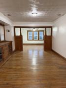 Upper unit , fresh paint, real hardwood floors, built in cabinets in dining area and living room. Balcony in the back of house.