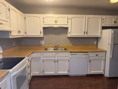 The home offers a comfortable layout with a functional kitchen that includes a range and refrigerator. While the unit has not been recently renovated, it has been lightly refreshed and offers a clean, straightforward living space.