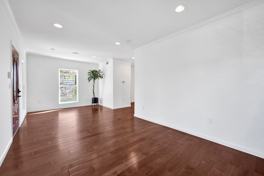 The outdoor amenities are truly the crown jewel of this property. A massive covered patio area is large enough to host dozens of guests while providing a spectacular view of Downtown LA. Beyond the patio, the huge backyard offers plenty of space for recreational sports or simply soaking in the lovely LA weather. Additionally, the property provides the convenience of covered parking for two cars.