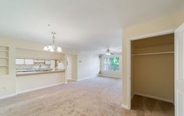 Inside, the condo features brand-new carpeting and fresh paint throughout. The open living and dining area creates a bright, airy atmosphere, while the well-maintained kitchen includes updated cabinet fronts, new flooring, and convenient access to the in-unit washer and dryer. The bedroom also enjoys serene water views and features an en-suite bathroom.