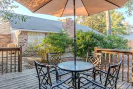 The private backyard is fenced for your convenience for the whole family or group to enjoy. Underneath the trees at the patio table you'll find the festoon lights overhead. You are also welcome to use the propane grill in the backyard at your own risk, we’ve provided grilling utensils for you.