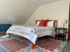 Duplex: Enter through french-style doors to charming, window-filled great room on main floor (living/kitchen) with 2nd floor bedroom. A wide south-facing porch on acres of fields and forest ( a pet favorite!). Duplex consists of this listing and a 2-bedroom unit (solo, quiet occupant, in 2-bedroom).