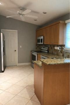 The kitchen offers granite countertops and ample cabinets, perfect for the home chef.