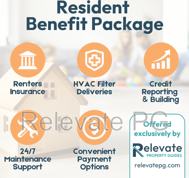 - Resident Benefits Package: $42 + $6 per financially responsible applicant (Includes renter’s insurance, credit reporting, filter delivery, & more)