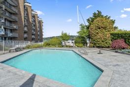 Enjoy peaceful, lake living from this inviting 1-bedroom condo at Spinnaker Bay. Large floor-to-ceiling windows fill the open living area with natural light and connect seamlessly to a private patio, ideal for morning coffee or unwinding in the evening. The home features standard kitchen appliances, fresh paint, new carpet, and updated flooring, making it truly move-in ready. Residents can take advantage of great community amenities including a pool, clubhouse, kayak storage racks, and convenient moorage access. The building offers private gated entry, a secure lobby and wheelchair accessibility. Laundry rooms are available on multiple floors.