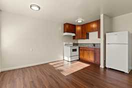 Discover this beautifully remodeled two-bedroom, one-bathroom apartment located at 9635 Plymouth St in Oakland, CA 94603. The residence features a clean and contemporary aesthetic with updated plank flooring and fresh neutral paint throughout. At the heart of the unit is an updated kitchen boasting durable granite-style countertops, ample cherry-finished cabinetry, and a crisp white electric range. The bathroom has also been refreshed with a modern vanity and updated fixtures to complete the renovated look.