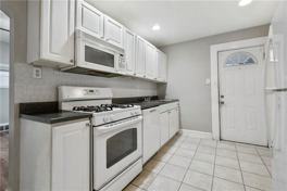 The kitchen comes fully equipped with a refrigerator, gas range, microwave, and dishwasher, plus plenty of cabinetry to keep everything organized. A convenient half bath completes the main level.