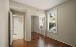 This IMMACULATE end unit in a QUIET interior tract location features three spacious bedrooms (one bedroom and FULL bathroom on the MAIN level!) , a loft with built in desk and storage, plus over-sized 2-car direct access garage with additional storage space! LIGHT and BRIGHT with soaring cathedral ceilings, this home is beautifully upgraded with neutral carpet, tile and laminate flooring, designer paint, plantation shutters, and built-in media cabinet in living room! The formal dining space features the dramatic two-story ceiling height and an elegant built-in cabinet perfect as a china-hutch or display cabinet! Entertain in an open kitchen with solid granite counter tops, spacious island, stately cherry colored cabinetry, ample pantry space, and convenient under cabinet task lighting! Enjoy a master suite with en-suite master bathroom featuring luxurious soaking tub, walk-in closet and dual sink vanity! Washer and dryer are included! Walking distance to the private community fitness center, three pools, tennis and more! You can enjoy Quail Hill's resort style amenities PLUS Irvine's award winning schools!