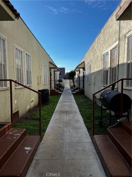 For rent! Remodeled and Unfurnished Apartment in Secured Gated Complex. Single Story End Unit means no one above or below you! Livingroom Entry! Bright and Sunny Kitchen with Tile Floors, Stainless Steel Sink, Stove and Refrigerator Included! Spacious One Bedroom with Raised Panel Doors, New Carpet, Ceiling Fan, Water Heater and Huge Walk-in Closet! Solid Core Front Door with Security Screen Door and Security Windows. Tiled Bath with Safety Grab Bars in Shower over Tub! Section 8 Welcome! Water & Trash included. Tenant pays gas and electric. Street parking. Laundry facilities to be installed in June 2026! Don't miss this opportunity to live in a secure and modern apartment within Walking distance to Normandie Ave. School, library, parks, shopping, and transportation!