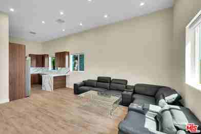 A partially furnished single-family residence available for rent in the desirable Porter Ranch area. The property offers three bedrooms and two bathrooms, encompassing approximately 1,200 square feet of thoughtfully designed living space. The home features an open-concept layout with high ceilings, recessed lighting, and abundant natural light throughout, creating a bright and comfortable living environment. The modern kitchen is equipped with stainless steel appliances, custom cabinetry, and elegant stone countertops, seamlessly flowing into the living and dining areas. Updated bathrooms showcase contemporary finishes, glass-enclosed showers, and sleek fixtures. Additional highlights include in-unit laundry, wood-style flooring, and driveway parking accommodating two vehicles. This well-maintained home provides a refined yet welcoming atmosphere, ideal for comfortable everyday living.