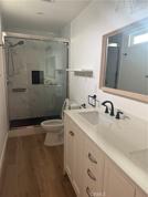 REMODELED Single story house with 3 bedrooms and 2 bathrooms. You are greeted with wonderful cathedral ceilings. A Modern look like newer Laminate Wood floor, Quartz Kitchen Countertop, Newer Cabinets, and Recessed Lighting. The family room is now the third bedroom, a large master suite with a fireplace and walk-in closet. Newer Dishwasher and Newer Gas Cook top. Newer ABS Plumbing whole house, New 40 gallons water heater, Newer Garage Door. The location is great, close to Knotts Berry Farm, Disneyland, City hall, nearby restaurants. Close to freeways and shopping. """move in condition"""