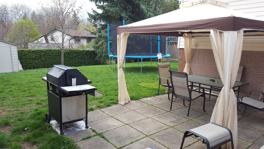 Nice kitchen, laundry, Family room with fireplace. Jus renovated bathroom. One parking spot.