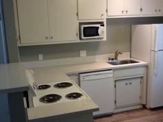 This 12 unit building, built in 1958, is undergoing an extensive renovation which includes new dual pane windows, front doors, paint, landscaping, and fencing. The units are also undergoing a remodel which will feature new paint and flooring throughout, new lighting, remodeled bathrooms and kitchens, and new AC units. Currently a 560 square foot, newly renovated one bedroom/one bathroom apartment home is now available. This unit features beautiful quartz kitchen counter tops and a quartz tub/shower enclosure.