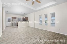 Welcome to 1702 W. BROOME ST, a stunning 3-bedroom, 2-bathroom apartment located in the vibrant city of Edinburg, TX. This gated property boasts an open floor plan with high ceilings, hardwood floors, and modern fixtures that create a sleek and stylish living space. The kitchen is equipped with stainless steel appliances, including a refrigerator, microwave, and stove/oven. A washer and dryer are also included for your convenience. The master bedroom features a walk-in closet and a private bath, providing a luxurious retreat. This pet-friendly property (breed restrictions apply) offers 24/7 maintenance support, ensuring your comfort at all times. The tenant is responsible for electric and water, while trash removal and lawn care are included in the lease. Enjoy the comfort of central AC and the convenience of a 12-month lease. Please note, this is a no-smoking property. Experience the best of Edinburg living at 1702 W. BROOME ST.