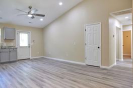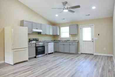 Updated flooring, paint, cabinets, ceiling fans, and laminate countertops.