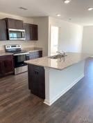 The kitchen features granite countertops, a center island, and Moen chrome fixtures, and opens directly to the family room, making it perfect for everyday living and entertaining. The large primary suite includes a private bath with a separate soaking tub and walk-in shower, along with a raised double-sink vanity.