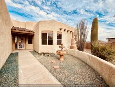Step outside to your own private oasis, enjoy a sparkling pool, low-maintenance turf, a covered patio, and a charming kiva fireplace that extends outdoor entertaining well into the evening. A storage unit adds even more convenience.