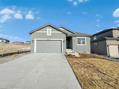 This beautiful BRAND NEW built by Vantage Home builder, designed for open-concept, ranch sits on a west-facing lot in the highly desirable Wolf Ranch community, just minutes from the recreation center and pool. The main level offers effortless living with a private primary suite featuring a five-piece bath and walk-in closet, a spacious great room ideal for entertaining, and a dining area that flows seamlessly into a gourmet kitchen with an oversized island, full backsplash, walk-in pantry, and extended hardwood flooring. A thoughtfully placed laundry room off the owner’s entry adds everyday convenience, while a secondary bedroom and full hall bath complete the main floor.