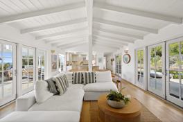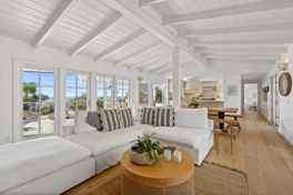 This stunning Malibu Park updated single-story ranch-style home embodies the epitome of beachside living, offering breathtaking ocean views from almost every room. The great room boasts high beamed ceilings, oak wood floors, and multiple French doors that lead to a spacious ocean view covered patio, along with a lush grassy front yard and a charming patio back yard. Relax in the living room by the rough-hewn stone fireplace, adding to the cozy coastal ambiance. The gourmet kitchen is a culinary haven, featuring large skylights, high-end appliances, polished Taj Mahal countertops, custom cabinets, and a convenient breakfast bar. The bright and open floor plan creates a seamless flow, perfect for hosting parties and indoor/outdoor entertaining. This home includes two-bedroom suites, one with an office, as well as two ocean-view bedrooms with bay windows and two bathrooms. The ocean view owner's suite offers a serene retreat, with a raised entry, high ceilings, a spa-style bath, a custom closet, and French doors opening onto the front patio and the backyard. End the day playing ping pong, sitting in one of many outdoor seating areas, roll in the large grassy yard or sit in the cedar wood dry sauna. It's the Ultimate beach Vibe. For added peace of mind, the property is gated and fenced for security. Fully furnished and available for monthly rentals, this home is ready to provide a luxurious coastal lifestyle. Don't miss the opportunity to call this beachside oasis your own. INCLUDES ALL UTILITIES, WEEKLY CLEANING, GARDENER