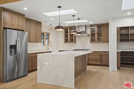 Tucked away on a quiet cul-de-sac in highly desirable Mar Vista, this recently remodeled single-story residence offers exceptional flexibility and modern California living. The property features a 1,890 SF main house with 3 bedrooms and 3 bathrooms, plus a 500 SF attached ADU, providing a versatile layout ideal for a variety of living and lifestyle needs. The main residence showcases soaring vaulted wood ceilings, hardwood floors, and abundant natural light, creating a seamless indoor outdoor flow. At the heart of the home is a chef's kitchen with a quartz waterfall island, custom cabinetry, premium appliances, statement lighting, and a walk-in pantry designed for both everyday living and effortless entertaining. Expansive living and dining areas open directly to the backyard, enhancing the home's entertaining appeal. The private backyard retreat offers multiple zones for dining, lounging, and gathering, surrounded by mature landscaping. A large storage shed provides ample space for bikes, surfboards, and outdoor gear. Located within the Beethoven Elementary School district, the home is moments from local parks, dining, and everything that makes Mar Vista one of the Westside's most sought-after communities.