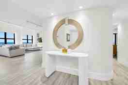 Discover the pinnacle of oceanfront living in this exceptionally rare, never before rented, beautifully renovated 3-bedroom, 4-bath, TWO STORY PENTHOUSE featuring a PRIVATE ELEVATOR INSIDE THE CONDO directly on the sand, available for annual or seasonal lease (min 4 mo). Comprised of 3,288 square feet under air with 4,000 total square feet, this home in the sky offers unobstructed ocean and intracoastal views throughout. Thoughtfully designed with modern elegance and comfort, this stunning residence features a PRIVATE ELEVATOR, offering seamless access to both levels. Bask in the ocean grandeur on any of your 4 private balconies - one of them a large unobstructed oceanfront terrace which can accommodate 30+ guests, outfitted with a bar, dining table, and outdoor TV overlooking the ocean. Discover the pinnacle of oceanfront living in this exceptionally rare, never before rented, beautifully renovated 3-bedroom, 4-bath, TWO STORY PENTHOUSE featuring a PRIVATE ELEVATOR INSIDE THE CONDO directly on the sand, available for annual or seasonal lease (min 4 mo). Comprised of 3,288 square feet under air with 4,000 total square feet, this home in the sky offers unobstructed ocean and intracoastal views throughout. Thoughtfully designed with modern elegance and comfort, this stunning residence features a PRIVATE ELEVATOR, offering seamless access to both levels. Bask in the ocean grandeur on any of your 4 private balconies - one of them a large unobstructed oceanfront terrace which can accommodate 30+ guests, outfitted with a bar, dining table, and outdoor TV overlooking the ocean. This is the perfect place to entertain or unwind while enjoying the breathtaking panoramic ocean views both day and night. This residence boasts 2 luxurious Primary Suites - one up and one down - each with spa-like en-suite baths and expansive closet space with custom built-ins, along with a third spacious bedroom and a convertible 4th bedroom, all designed for ultimate comfort. All bedrooms feature ocean-facing impact windows that flood the home with natural light and frame stunning water views. The upper-level suite features his and her baths, one with a tub and balcony with beautiful intracoastal views and another with a shower, bidet, and a bonus storage room. The bedroom showcases three adjacent floor-to-ceiling glass doors that open simultaneously, creating a seamless, open-air connection to the breathtaking ocean and sky - a truly unparalleled and rare experience. The open, modern, ocean facing, newly renovated state-of-the-art chef's kitchen is equipped with premium Bosch appliances, sleek cabinetry, and elegant finishes, perfect for culinary enthusiasts. For your entertainment and wellness needs, the home includes a Peloton, a TV wall projector mounted on the second floor for cinematic experiences on the large living room wall, motorized window shades, and a Sonos sound system throughout. Step outside to your private beach cabana on the sand where you'll enjoy a season of oceanfront lounging in style with fresh cushions replaced daily. Set within a full-service building, residents enjoy a resort-style pool, direct beach access, club room, and a state-of-the-art fitness center. Featuring 2 garage parking spaces while combining elegance, privacy, convenience, and unmatched views, this rare gem is your chance to live the beachfront lifestyle you've always dreamed of. ***Available annually for $19,500/month or seasonally for 6 months at $2..