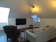 This open concept loft apartment with the spiral staircase entrance comes with a fully furnished kitchen, living room, bedroom and everything you need from dishes and utensils to the linens. Refrigerator, microwave oven and washer/dryer provided.
