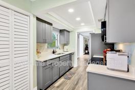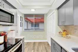Beautifully renovated 2-bedroom, 2-bath corner unit on the 3rd floor of Building II in Seville Condominiums, a desirable 55+ community with elevator access. This spacious 1,200 sq ft home features water-resistant laminate flooring throughout, crown molding, and an updated kitchen with soft-close cabinets, quartz countertops, stainless steel appliances, pantry, and eat-in dining area. Both bathrooms are upgraded, and the primary suite includes a walk-in shower and two spacious closets. Recent upgrades include a newer electrical panel and HVAC (Dec 2022).
