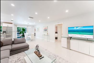 Beautifully 4 bedroom 2 bath updated and fully furnished residence located in the heart of Hollywood Hills. This spacious home features a bright, open-concept layout with large porcelain tile flooring throughout, recessed lighting, and modern finishes. The chef’s kitchen offers white shaker cabinetry, granite countertops, stainless steel appliances, double wall ovens, and a large island perfect for entertaining.