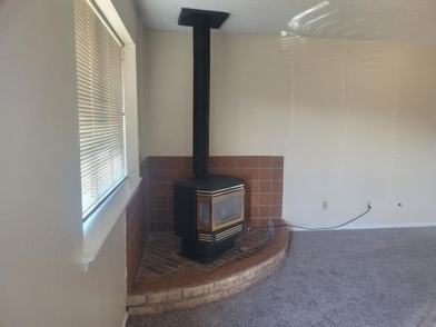 Clean and fresh, totally updated, new carpet, fresh paint, new blinds ready to move in. Living room, dining area, nice kitchen, electric range. Quiet country setting.