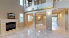This home features a full bedroom and full bathroom downstairs, ideal for guests, in-laws, or a home office. You'll immediately notice the beautiful tile floors with custom inlays and vaulted ceilings that create an airy, elegant feel. Enjoy not one, but two gas fireplaces — one in the living room and another in the family room.