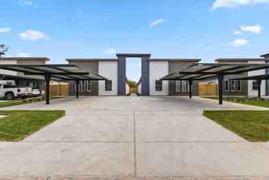 Discover this brand-new modern fourplex featuring four spacious rental units, each offering 3 bedrooms and 2 bathrooms. Enjoy tiled floors, a stylish kitchen island, and sleek, contemporary finishes. Each unit includes a combination shower and tub. The back units boast larger yards, fully enclosed with privacy fencing. Nestled in a gated community, it offers safety and beauty, with convenient access to a nearby golfing community, expressways, schools, and dining. Water & trash included. A perfect blend of style, comfort, and convenience!
