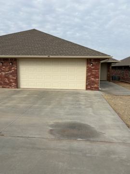 Welcome to this cozy 2 bed/2 bath duplex in Weatherford, OK. Built in 2018, this modern home boasts wood-look laminate flooring throughout, ceiling fans, laundry room, double car garage, covered back patio with a fenced backyard, and more. Dishwasher, refrigerator, oven, and microwave included. This unit will be newly painted once current tenant moves out. Pictures are from a neighboring unit with an identical layout. No pets/smoking. Available 3/20/26 for $1400/month.