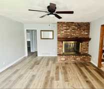 3 bedroom, 2 bath home with a beautiful brick fireplace , at the end of a quiet cul-de -sac. Extra room for office space or storage in garage. 1251 sq feet of living space. Indoor laundry room. Large fenced in back yard with storage shed. Yard maintenance included. Move in ready!