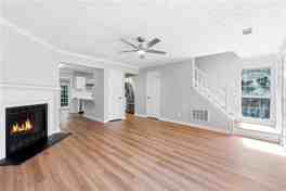The main floor showcases high-end hardwood-style flooring, a bright and airy living area, and a stunning kitchen with quartz countertops, wood cabinetry, and ample storage, perfect for both everyday living and entertaining. Upstairs, bedrooms are comfortably finished with plush carpet and include a laundry closet conveniently located on the bedroom level.