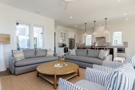 Nestled in the heart of Wrightsville Beach, Ocean's Eleven offers a luxurious experience that combines modern elegance with coastal charm. This expansive five-bedroom, four-and-a-half-bathroom retreat can comfortably sleep up to twelve guests, making it perfect for large families or group getaways. Stepping inside, you're greeted by a spacious, light-filled living area with stunning ocean views. The open-concept design flows seamlessly into the chefs kitchen, complete with quartz countertops, Thermador appliances, and all the necessary cooking utensils for preparing delicious meals.