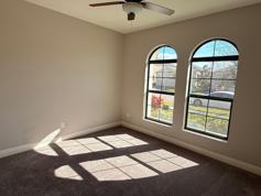 The owner’s retreat is privately situated and provides a peaceful escape, complete with a large walk-in closet and an ensuite bath featuring dual sinks. Additional bedrooms are positioned toward the front of the home, making them perfect for guests, family members, or a home office. New carpet has recently been installed in all bedrooms for a refreshed, move-in-ready feel.
