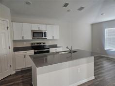 Immediate rental available - single-family home in the desirable Bradbury Creek community of Haines City. This single-story residence offers 3 bedrooms, 2 bathrooms, and open living space, plus a 2-car garage and covered back patio. The modern open-concept layout features vaulted ceilings and a stylish kitchen with quartz countertops, stainless steel appliances, and ample cabinet space—perfect for everyday living and entertaining. Sliding glass doors lead to a covered lanai, ideal for enjoying Florida’s outdoor lifestyle. The spacious primary suite easily accommodates a large bedroom set and includes a private bath with dual vanities, walk-in shower, and oversized walk-in closet.