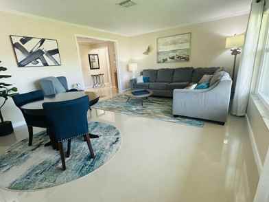 Move-in ready 3/2/2 with salt-water pool; cabana master bath and screened-in porch. Travertine and marble-like flooring throughout living areas. Updated open layout kitchen, solid wood cabinetry, stainless steel appliances, huge island for entertaining, modern upgrades everywhere! Extra-wide driveway for 3+ cars. New roof 2025. New A/C 2024. This pristine home is in perfect condition for quick move-in. Includes clear storm shutters. Impact front door and front bedroom window. Centrally-located near Lantana square, shops and much more.