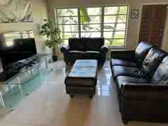 Fully Furnished, remodeled home 3/2 new energy efficient roof with new A/C. Beautiful natural wood vaulted ceilings, marble counters, tiles floors, lushly landscaped pool with an abundance of fruit trees. Like a resort private backyard fenced all around with a beautiful private pool. No HOA so no need approval or credit score only background check. Available for March 1st, 2026