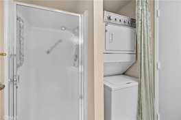 55+ Community. Panoramic treetop and mountain views. This popular "CASA VISTA" model has NO STAIRS, no one above, and an end location, and features in unit laundry while sitting above an expansive greenbelt with beautiful open views from the balcony. Monthly rent includes HOA dues covering access to Laguna Woods amenities as well as water, sewer, trash, and cable TV. Tenant is responsible for electricity, internet, and a renter’s insurance policy with minimum coverage of $300,000 liability. The first occupant must be age 55 or older and a second occupant may be age 45 or older. Sliding glass doors in the living room open to an extra long covered balcony, perfect for morning coffee, afternoon reading, and barbecuing while you enjoy the scenery. Fantastic location between gates 7 and 8. The kitchen offers abundant cabinetry, solid custom surface counters, a breakfast and serving bar, and a full suite of appliances including a cooktop, wall oven, microwave, dishwasher, and a side by side refrigerator. Both bedrooms are generous. The primary suite features a large walk in closet and an ensuite bath. The guest bedroom opens directly to the balcony, offering views and fresh breezes along with great natural light. The hall bath features a convenient step in shower and a stacked washer and dryer, a coveted feature in this community. Added comforts include multiple ceiling fans, wall AC units, neutral finishes, and excellent storage. Add all this to the amenities offered by Laguna Woods Village including the 27 hole championship golf course plus the 9 hole executive par three course, tennis and pickleball, paddle tennis, lawn bowling, two fitness centers, seven clubhouses, five swimming pools, an equestrian center, gardening opportunities, an art studio, a world class woodshop, and over 200 clubs and organizations. Enjoy free community bus transportation, nearby shopping, guard gated security, and economical RV storage. Just approximately 6 miles from beautiful Laguna Beach. Country Club living at its best.