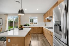 This stunning KB Home model home offers designer luxury upgrades throughout, creating a perfect blend of style and functionality. Featuring 5 bedrooms, 3bathrooms, and a generous loft, this spacious layout is ideal for families and guests. The open-concept design connects the great room to the dining area and modern kitchen, which flow into a beautifully landscaped backyard. A first-floor guest room offers convenience for multi-generational living or visiting guests, while the oversized primary suite features a modern, upgraded bathroom. Energy-efficient appliances and fully paid solar panels ensure long-term savings. Situated directly across from the community park, this home is within walking distance to schools and just minutes from New Haven Marketplace, offering easy access to shopping, dining, and entertainment. Commuters have proximity to the 15 and 60 freeways, making travel effortless. This is a rare opportunity to move in immediately- everything is ready and waiting for you!