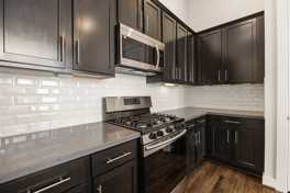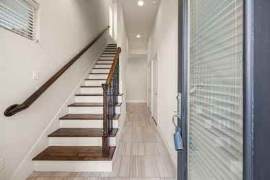 Welcome to this beautifully designed, move-in-ready townhome located in a private gated community offering both style and convenience. The second floor is the heart of the home, showcasing an open-concept living, dining, and kitchen area with soaring ceilings, rich hardwood floors, and abundant natural light. The living room is anchored by dramatic floor-to-ceiling windows, creating an airy, inviting atmosphere perfect for entertaining or everyday living. The chef’s kitchen is equipped with sleek dark cabinetry, stainless steel appliances, gas cooking, quartz countertops, a large center island with seating, and a walk-in pantry—ideal for both cooking and hosting. A conveniently located half bath completes the second floor. Both suite offers a private retreat, featuring high ceilings, oversized windows, and a spacious walk-in closet. The spa-inspired bathroom includes a dual-sink vanity, modern finishes, and a separate soaking tub and walk-in shower. Perfect set up for roommates!