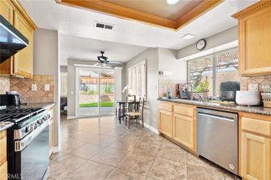 Check out this beautiful two-story home in northern Rancho Cucamonga, located within the boundaries of award-winning schools, including Los Osos High School. The first floor features an open living and dining area, a kitchen that opens to a cozy family room with a fireplace, and one bedroom with a full bathroom—perfect for guests or a home office. A sunny breakfast nook sits just off the kitchen with sliding doors leading to the covered patio and backyard. Upstairs, you’ll find a spacious primary bedroom with a walk-in closet, two additional bedrooms, and two bathrooms. The home also offers a separate laundry room with built-in cabinets and direct access to a large three-car garage. Recent upgrades include fresh interior paint, a newly installed microwave, new toilets, bathroom cabinets, and wood flooring on the stairs. The private backyard features a huge covered patio, a pool-size lot, and a slumpstone wall backing up to the wash. There’s plenty of room to play, along with RV access and gated space for smaller recreational vehicles. Located in a wonderful family-friendly neighborhood, this home is within walking distance to Central Park and Victoria Groves Elementary School, and offers easy access to the 210 and 15 freeways, shopping, dining, Victoria Gardens, Ontario International Airport, and the PE bike and jogging trail.