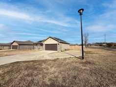 Open-concept floor plan with vaulted ceilings, walk-in shower, and a spacious laundry room. Situated on a corner lot with a fenced yard and covered back porch. Features an extra parking pad with plug—ideal for a camper or RV—plus solar panels for added efficiency. No smoking or vaping allowed in the house or garage. No pets. Application, background check, rental verification, and security deposit required.