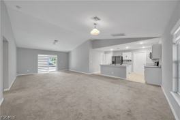 Home with 3 bedrooms and 2 bathrooms featuring an open floor plan, high ceilings, and plenty of natural light. Kitchen equipped with an island and stainless steel appliances. Includes a covered lanai suitable for outdoor use. Garage not available.