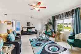 Beautifully updated 3-bedroom, 2-bathroom residence, perfectly situated on a spacious quarter-acre lot in North Lehigh Acres. This home features a bright, open-concept floor plan accented by oversized tile and luxury vinyl flooring throughout. No carpet for easy maintenance! Newly renovated kitchen, sleek island, modern cabinetry, and a full suite of appliances, including a dishwasher and microwave. The split-bedroom layout ensures maximum privacy, with the primary suite featuring a spacious walk-in closet
